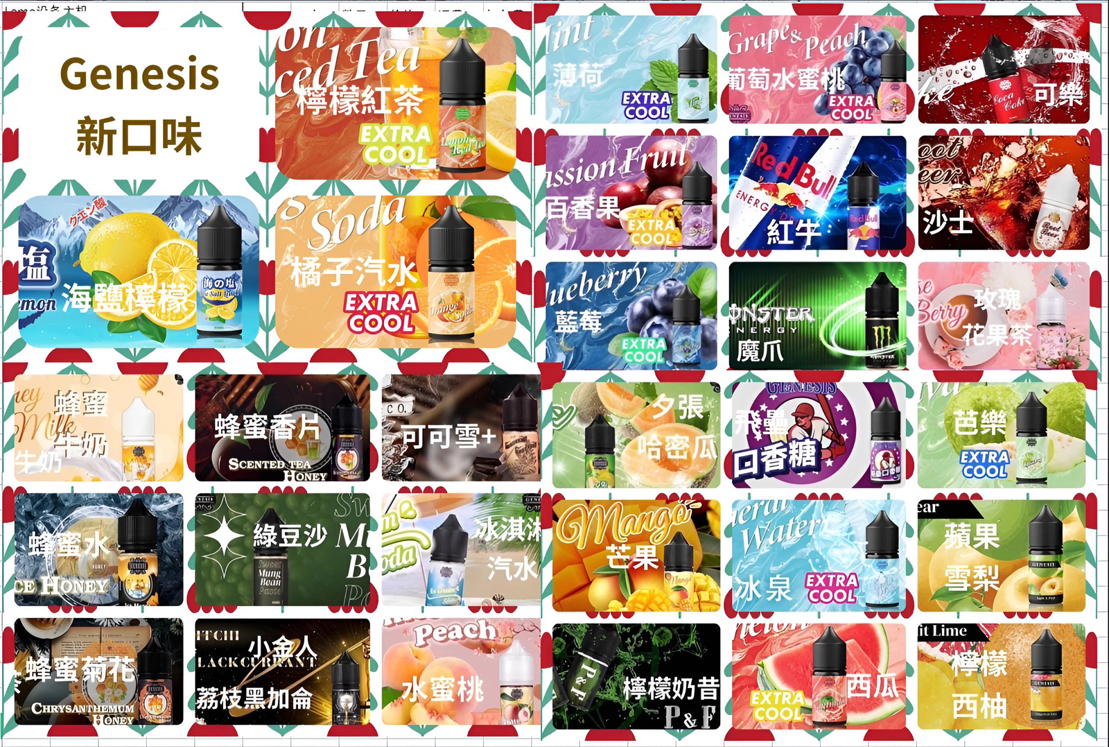 GENESIS創世紀煙油提供多種風味選擇,