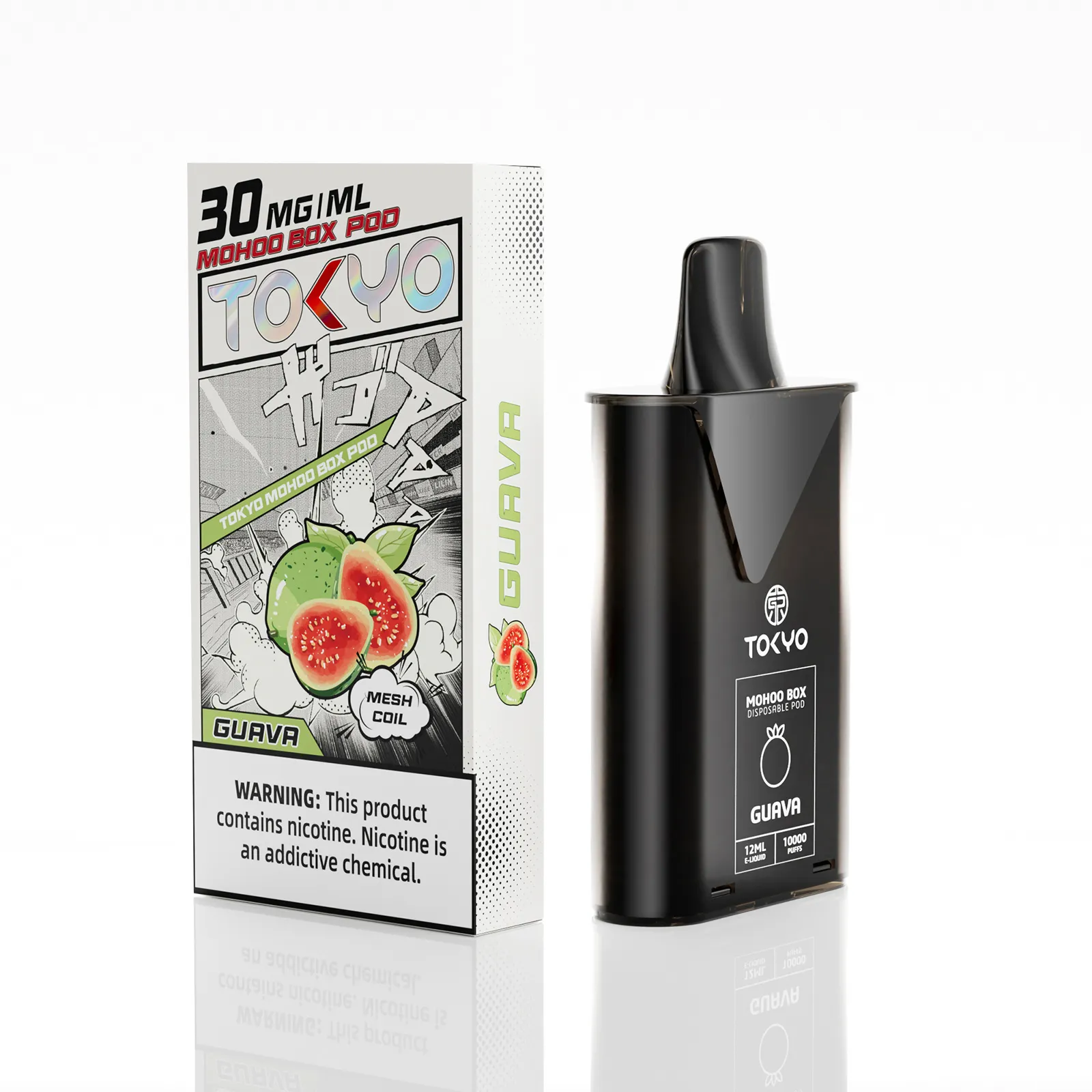 東京魔盒芭樂煙彈(Tokyo Mohoo Box Pod) 採用植物甘油(VG)與丙二醇(PG)基底,